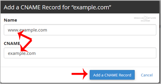 Name: Enter the name you wish to add, such as www, and cPanel will automatically add a domain name like www.example.com.