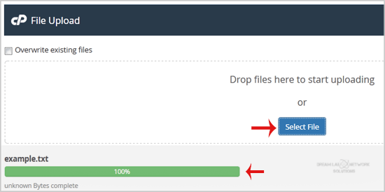 6. Click on the Select File button and select the file you want to upload from your PC. After you have selected the file, the upload process will begin automatically.