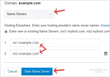 6. Enter your nameservers in the provided text boxes, and then click the Save Name Server button to save your changes.