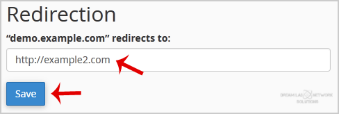 5. Under the Subdomain Redirection option, you should enter the link to which you want to redirect the subdomain in the available text box.