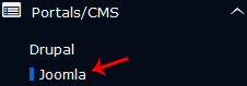 4. On the left side of your screen, you should locate the Portal/CMS category. Click on it and then click on the Joomla link that will appear.