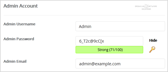 - Admin Username: Your new AEF username (for security reason do not use the Administrator or the Admin username.)