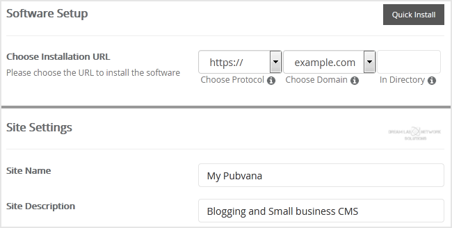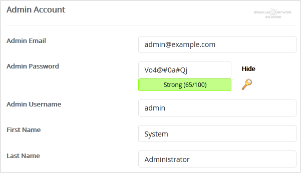 • Admin Username: Your new Pubvana username (for security reason do not use the Administrator or the Admin username.)