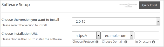 - Choose Installation URL: Choose the appropriate protocol/domain. Inside the "In Directory" field, should you want to install this in a directory, i.e., example.com/directory, enter the directory name. Otherwise, leave it blank to install in your main domain, i.e., example.com
