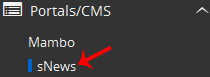 4. On the left side of your screen, you should locate the Portal/CMS category. Click on it and then click on the sNews link that will appear.
