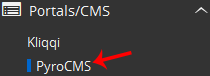 4. On the left side of your screen, you should locate the Portal/CMS category. Click on it and then click on the PyroCMS link that will appear.
