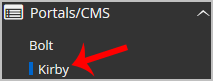 4. On the left side of your screen, you should locate the Portal/CMS category. Click on it and then click on the Kirby link that will appear.