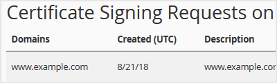 4. Under Certificate Signing Requests on Server text, you can see your previously generated CSR. You can see delete the option under Action.